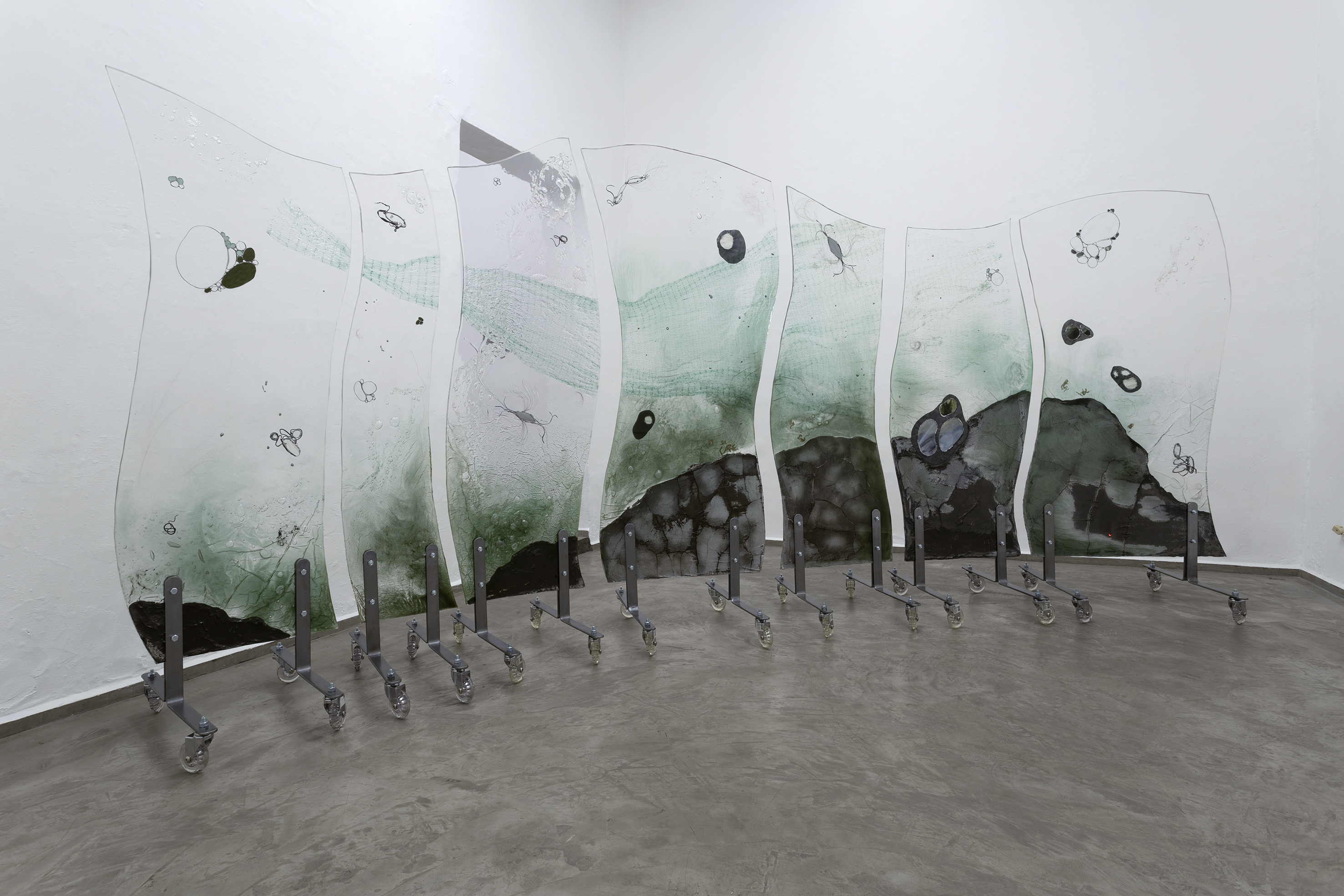 Sus obras hablan de los aspectos íntimos y colectivos del recuerdo mientras los espectadores se sumergen en el acto de la materialidad transformándose en una metáfora de la conexión. Los ensamblajes etéreos de Juan Carlos León evocan la interacción de ausencia y presencia, atrayendo a los espectadores a un espacio liminal donde la memoria es a la vez una sombra y un rastro; analiza más de cerca el papel del medio ambiente en la configuración de nuestras identidades ahora híbridas. Las exploraciones de Sebastián Beltrán en la materialidad rastrean las tensiones entre la permanencia y la impermanencia, utilizando la fisicalidad arquitectónica de sus obras para hacer eco de la naturaleza transitoria de la experiencia humana.