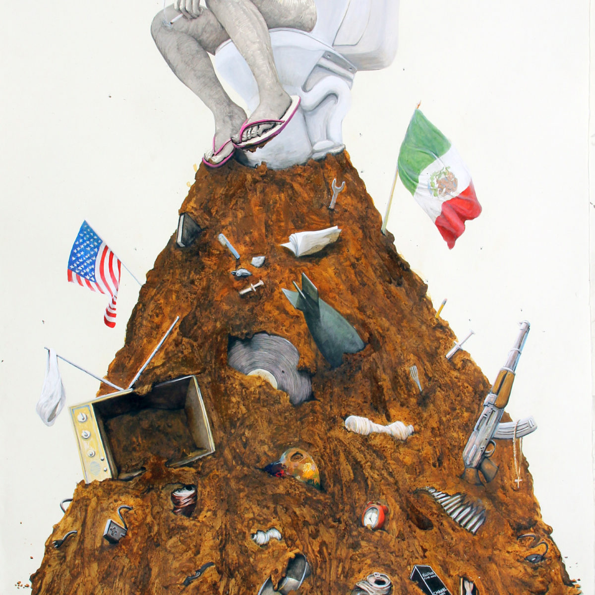 He uses drawing, printmaking, painting, photography, sculpture, film and installation as means to critically question and represent contemporary events. His narrative reflects on the division between nature and culture, the spectacle as a mediator of society and the imprint of the Anthropocene on our planet.